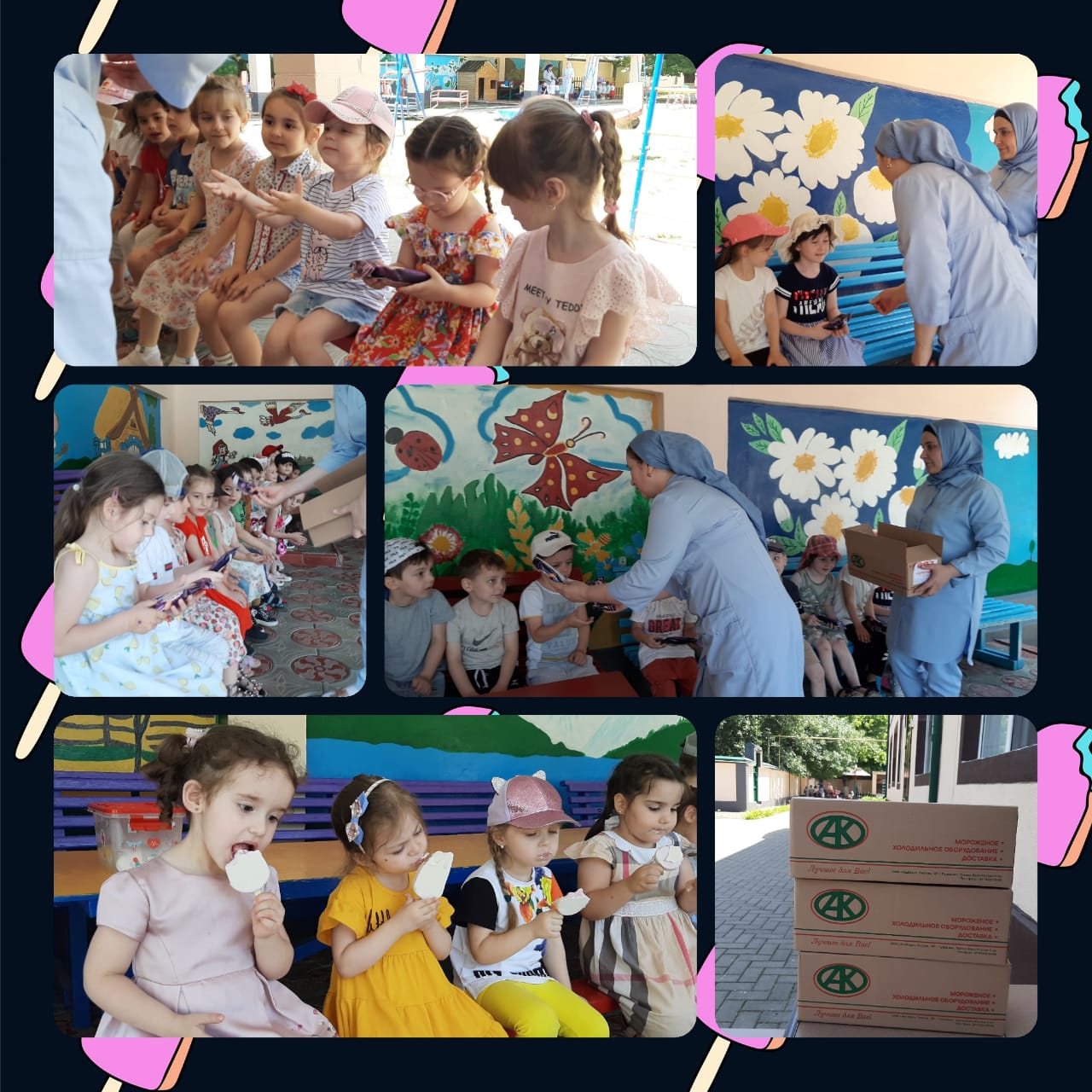 Ежегодно воспитанники детских садов республики 1 июня получают в подарок любимое лакомство детей - мороженое. Эту замечательную акцию проводить Помощник Главы Чеченской Республики по дошкольному образованию Зарган Ахматовна Кадырова.