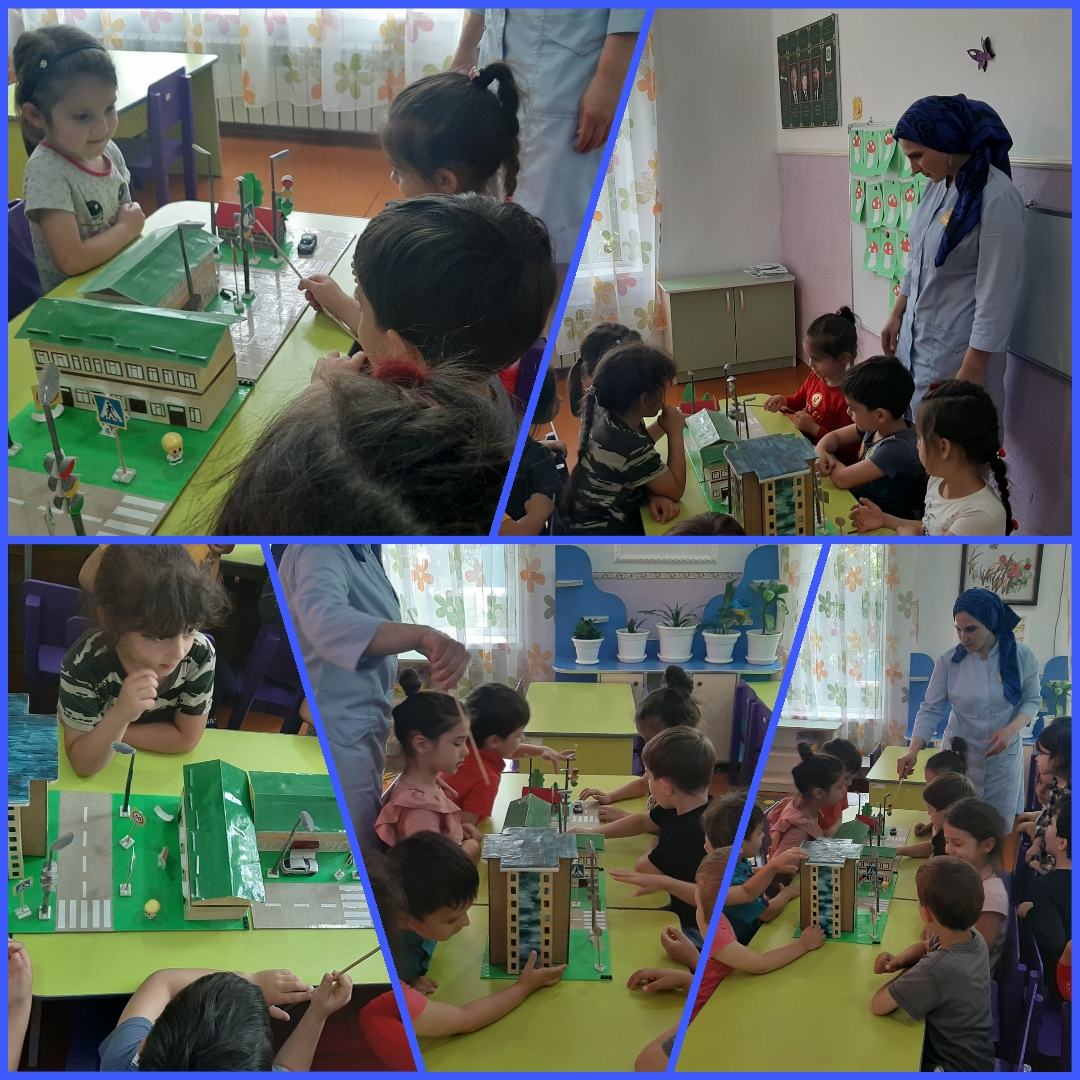 На протяжении всего обучения педагоги обращаются к теме безопасности дорожного движения, с этой целью в детском саду прповодят различные мероприятия, беседы, развлечения, обучают правилам дорожного движения в непосредственной образовательной деятельности.Наши воспитатели используют на занятиях разнообразную атрибутику правил дорожного движения для детского сада: игрушечные автомобили, автобусы, светофоры, дорожные знаки, наглядный материал.