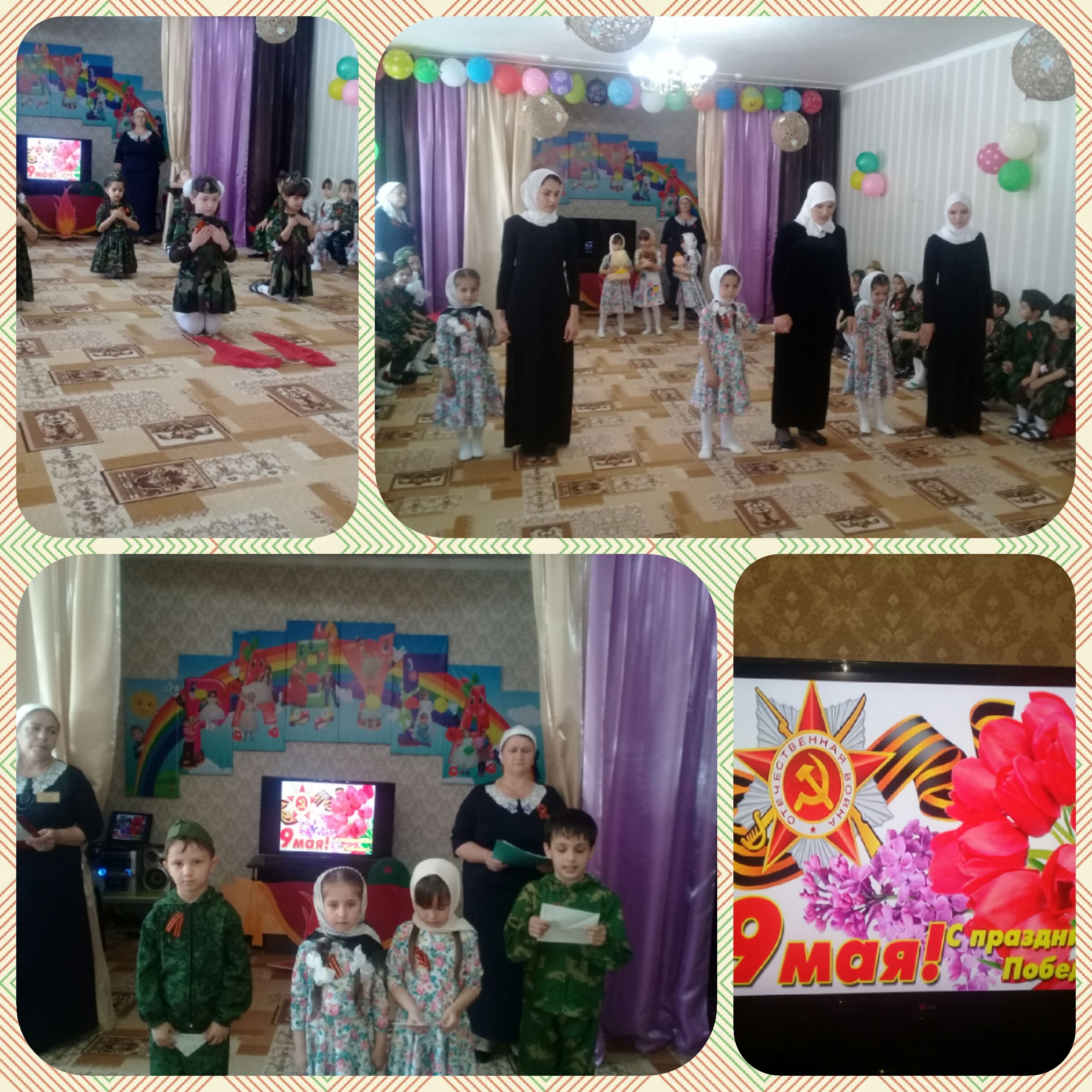 05.05.2017В МБДОУ "Детский сад № 1 "Радуга" прошел утренник, посвященный "Дню Победы". Утренник провели воспитатели старшей группы "Б" У.Г. Джабраилова, А.А. Митаева.