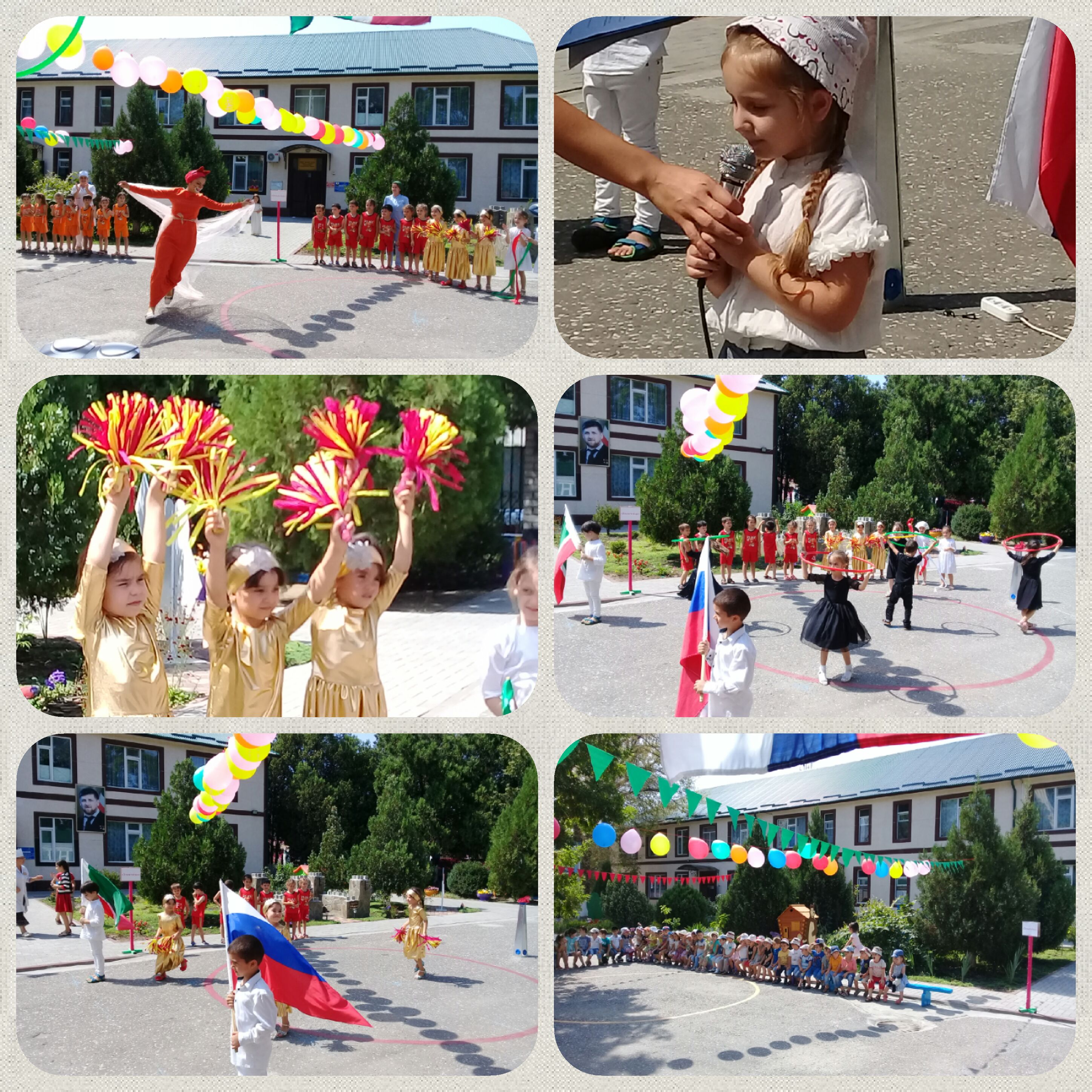 Начали праздник с гимна ЧР. Под физкультурный марш вышли две команды: «Олимпийцы» и «Молния».