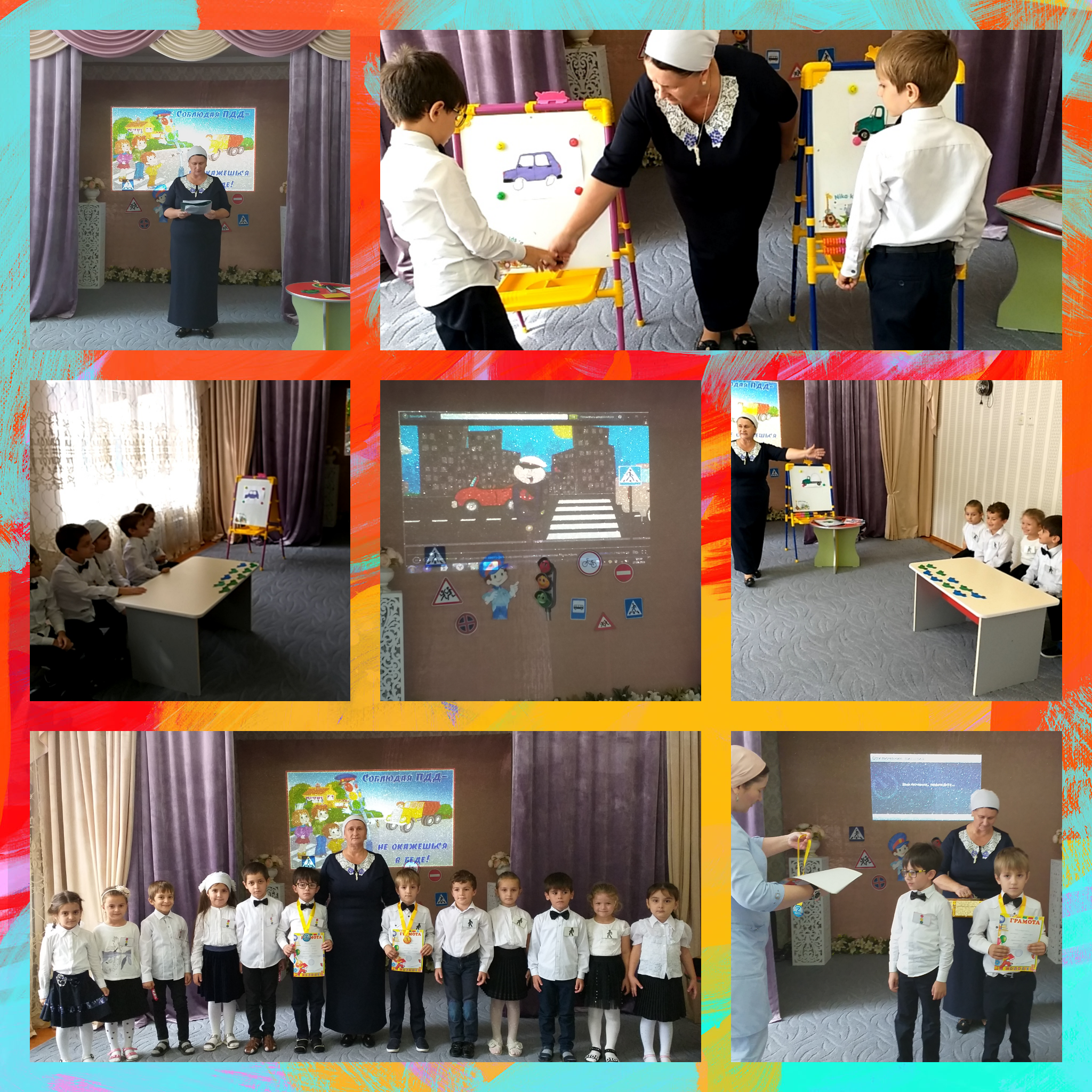 Анелией Анатольевной проведена огромная предварительная работа: разработка сценария, заучивание стихов, песен, подготовка реквизитом к конкурсам, подготовка слайдов по ПДД, оформление актового зала в соответствии с тематикой, подборка музыкального сопровождения.